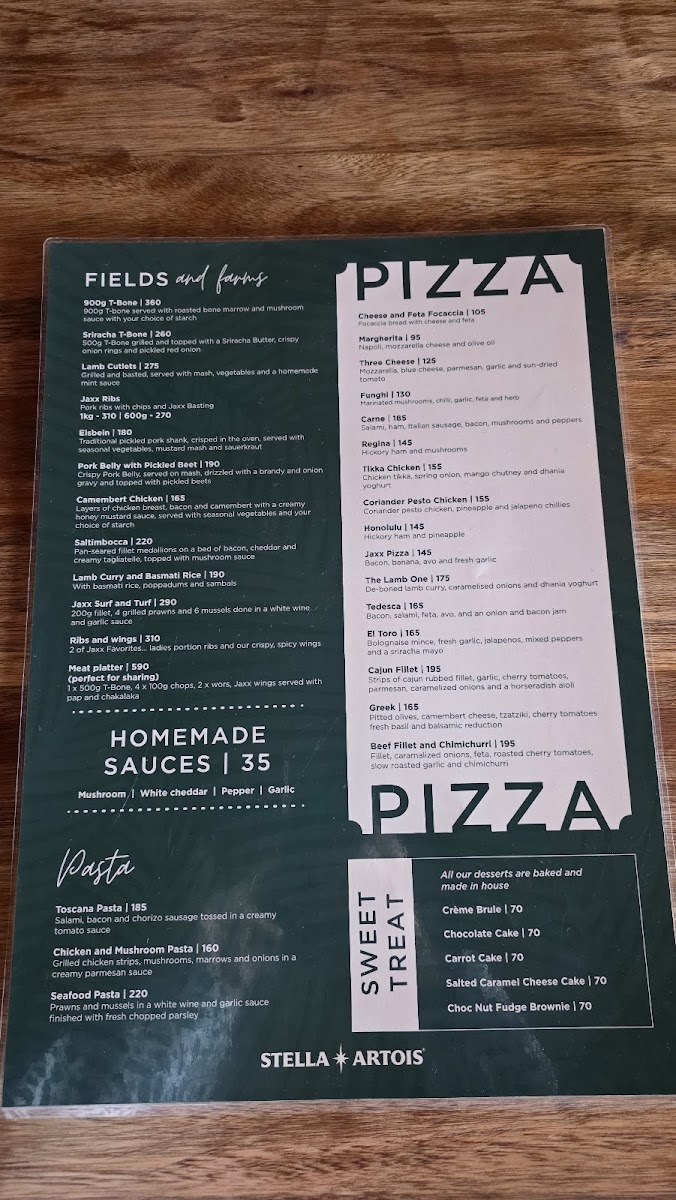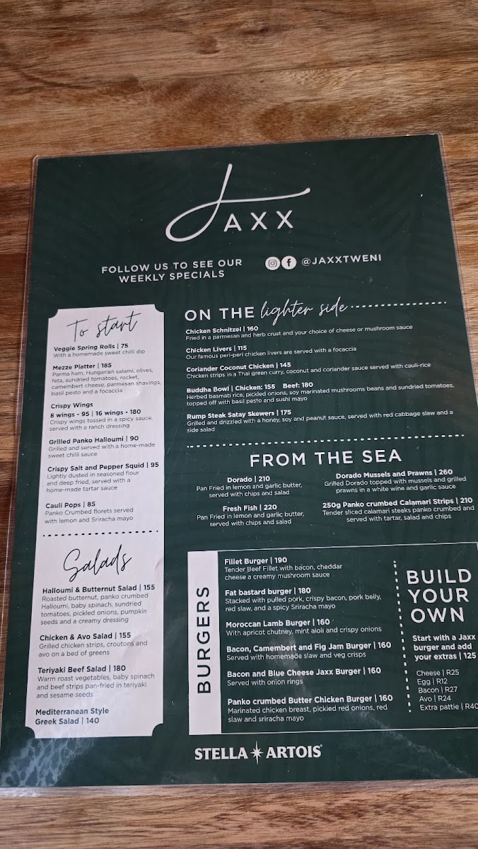 Welcome to Jaxx Restaurant, a culinary gem nestled on Old Saint Faiths Rd in Umtentweni, Port Shepstone. This vibrant eatery offers an extensive menu that caters to diverse palates, showcasing top-quality cuisine that elevates your dining experience.